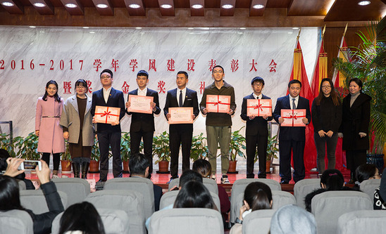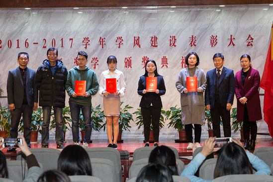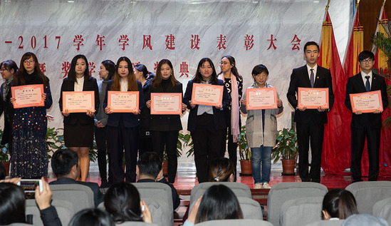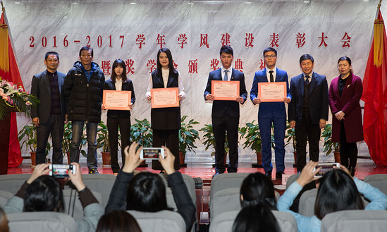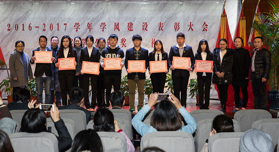 12月15日下午,学校在四百人报告厅隆重举行2016-2017学年学风建设表彰大会暨奖学金颁奖典礼。学校党委副书记、副校长段仁启,校长助理、外事处处长戴国庆,教务处常务副处长张磊,学工部副部长陈瑜、基础教学部副主任李志伟,以及各院系领导、学生工作负责人、辅导员、学生代表等出席大会。会议由学工部部长沈李主持。