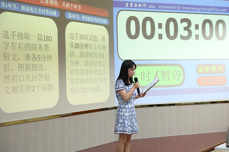 此次大赛设有个人赛和团体赛。个人赛共两轮。第一轮为朗读短文并回答问题;第二轮为即兴演讲并回答问题。团体赛为即席辩论赛。