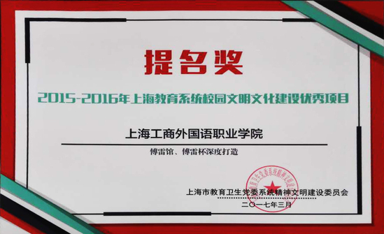 日前,2015-2016年上海教育系统校园文明文化建设优秀项目揭晓,高校共产生优秀奖6名,提名奖4名。我校“傅雷馆、傅雷杯深度打造”项目获提名奖,是唯一入选的民办高校。