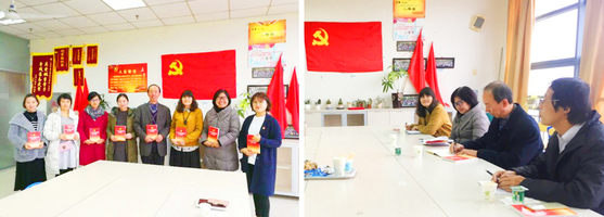 会议第一部分,张冬梅书记为支部每位党员郑重发放学习十九大的党建书籍,带领党员们集体学习了《十九大党章修正案学习问答》。她首先向大家介绍了书中部分与教育发展密切相关的内容,又从学校章程、教育改革、系部发展、课程思政等角度阐释了学校推进教育内涵式发展的努力,以及学校对进一步加强系部基层党组织建设工作的决心。