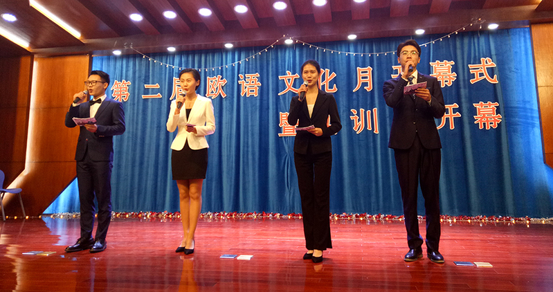 12月4日上午,第二届欧语文化月开幕式暨实训周开幕式在四号楼四楼报告厅隆重举行。欧洲语言文化学院院长虞龙发,副院长王保士、杨萍、黄慧华,分团委书记胡梦哲,各系教师以及辅导员等共同出席了开幕式。