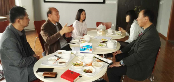 4月6日中午,学校副校长毛忠明、副校长段仁启与日语系主任张明明、党总支书记毕盛楠、教学副主任张冬梅、大一教研室主任朴金梅在北区食堂二楼教工活动中心共进工作午餐。