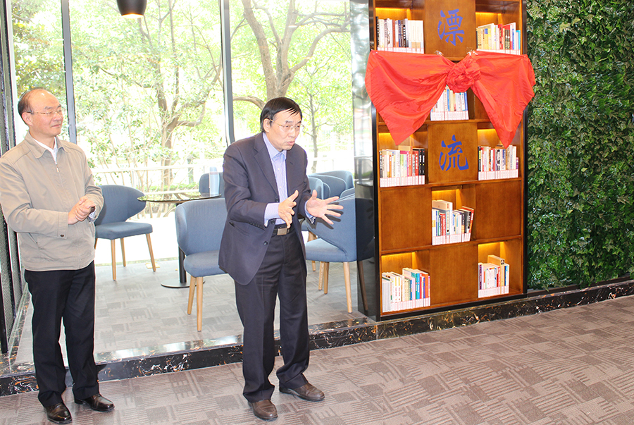 学生处处长沈李和图书馆馆长王松林正式开启“图书漂流活动”。