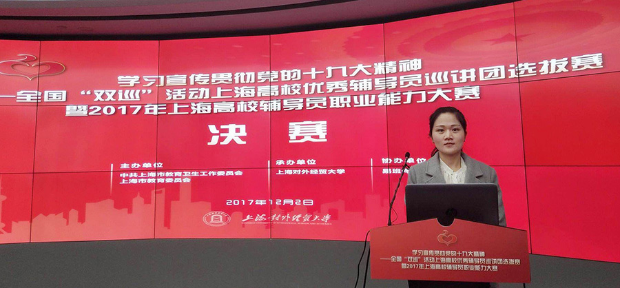 12月2日上午,由上海市教育卫生工作委员会、上海市教育委员会主办的“学习贯彻党的十九大精神——全国‘双巡’活动上海高校优秀辅导员巡讲团选拔赛暨2017年上海高校辅导员职业能力大赛”在上海对外经贸大学落下帷幕。我校商学院辅导员许兰玉老师荣获三等奖,是此次大赛中唯一一位获奖的民办高校辅导员。