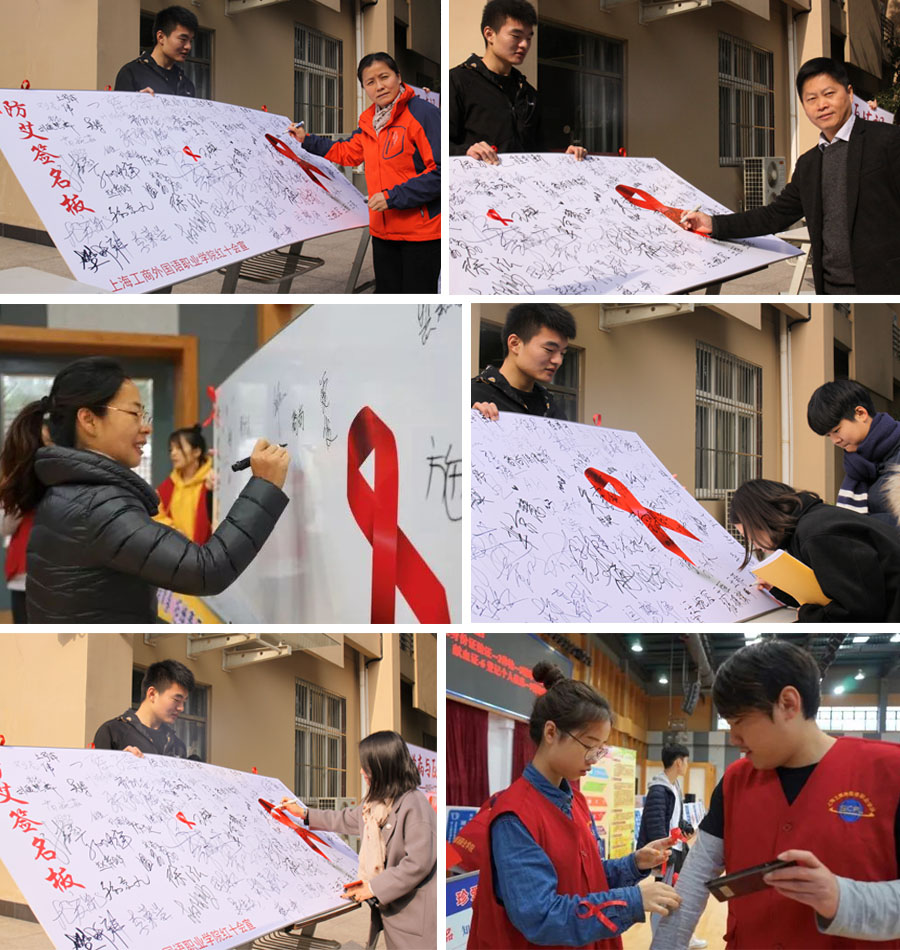 在此背景下,我校开展防治艾滋病宣传教育活动,旨在通过宣传展板、发放小礼品等方式对艾滋病防治知识、传播途径等内容进行宣传讲解,以期提高全校师生对艾滋病的认识,再增强防范意识的同时,消除对艾滋病人群的恐惧和歧视。数百名师生在签名板上签名支持。