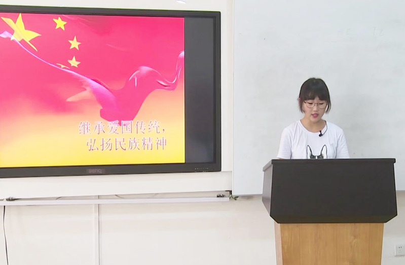 今年暑假期间,刘枷彤同学及基础教学部老师、实训中心老师冒着酷暑,共同参与完成了教学视频拍摄任务。刘枷彤同学主讲内容为以爱国主义为核心的民族精神,通过“帝吧出征”事件阐明了大学生如何理性爱国。刘枷彤同学精神饱满,讲解内容翔实,讲课流畅自然,展现了一名新时期大学生的良好风貌。