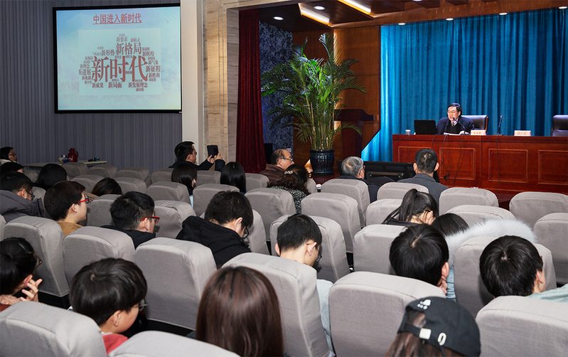 首先,朱书记以国家最新形象宣传片“中国进入新时代”导入,启发同学们从不同视角去理解与感受新时代的中国。其次,朱书记对“一带一路”倡议的历史背景与内涵做了论述,讲述“张骞出使西域”和“郑和七下西洋”的故事勉励当代大学生应与他们一样,不忘初心,为国家的发展与走出去贡献自己的力量。然后,阐述了“一带一路”语言先行的必要性。认为“一带一路”沿线地缘错综复杂,语言众多,文化灿烂。语言文化融通是“一带一路”建设的基础工程、先导工程和民心工程。通过语言文化交流,增进彼此了解、信任和友谊,探寻不同国家在文化、利益方面的契合点,促进文化互鉴和彼此认同,夯实民意基础,深植社会根基,可为经济合作和政治对话创造有利的条件。之后,朱书记认为,“一带一路”建设的关键在人才,这也是新时代大学生的使命。分析“一带一路”建设中人才的需求可知“一带一路”建设缺乏语言类人才,尤其是语言+人才,我校学生应该依靠学校“外语平台+职业技能模块”的人才培养模式加强语言与技能的学习,使自己成为一名具有国际视野与竞争力的人才。最后,朱书记分享了高职生张淑萍成为“第46届世界技能大赛形象大使”的故事,号召同学们理解“明德至善、融通中外”的含义;讲述了王聪、廖容、汤洋等优秀校友的故事,鼓励同学们树立“自立自强,志存高远”的理想;介绍了冯达、鲍震邦的职业历程,激励同学们“奋发努力,逐梦人生”。