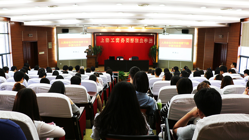 姜海山校长以其开阔的国际视野、扎实的外语基础、丰富的国际交流工作经验,结合国外访问亲身经历,用引经据典、数据分析、英语讲解等方式呈现观点,生动翔实。他以2017年“一带一路”国际合作高峰论坛引入话题,从人类命运共同体的视角出发,通过经济关系、政治关系、国际组织、全球治理四个方面带领大家去看待和认识中国与世界的关系。