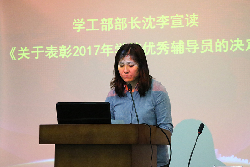 会议首先表彰了十位2017年学校优秀辅导员,号召大家向他们学习,勤奋工作,踏实努力,以实际工作贡献于广大学生的健康成长,在教书育人的工作中做出更大成绩。同时还表彰了由图书馆牵头实施的荣获“2015-2016年上海教育系统校园文明文化建设优秀项目提名奖”的《傅雷馆、傅雷杯深度打造》项目。会上还隆重为学校德育中心的建立举行了揭牌仪式。