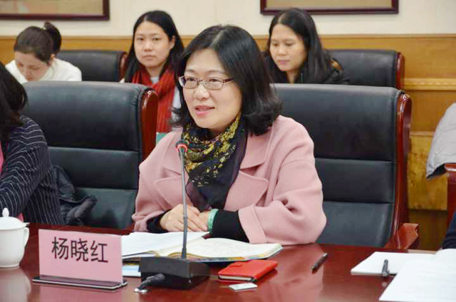 研讨会发言阶段,首先由上海市浦东外事服务学校曾敏老师从中高职贯通专业背景、任务及其分配等方面对中高贯通外语专业人才培养方案进行了解读。