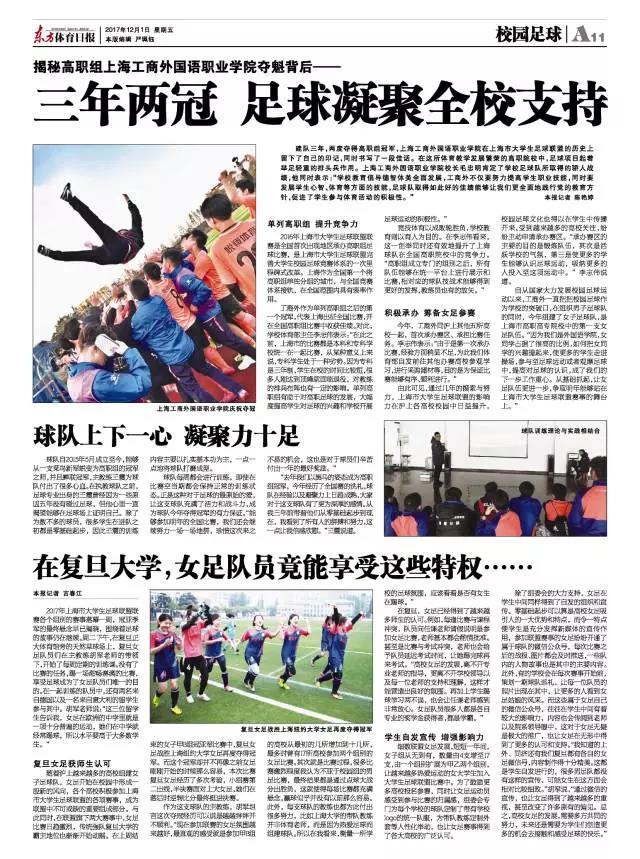 建队三年,两度夺得高职组冠军,上海工商外国语职业学院在上海市大学生足球联盟的历史上留下了自己的印记,同时书写了一段佳话。在这所体育教学发展繁荣的高职院校中,足球项目起着举足轻重的排头兵作用。