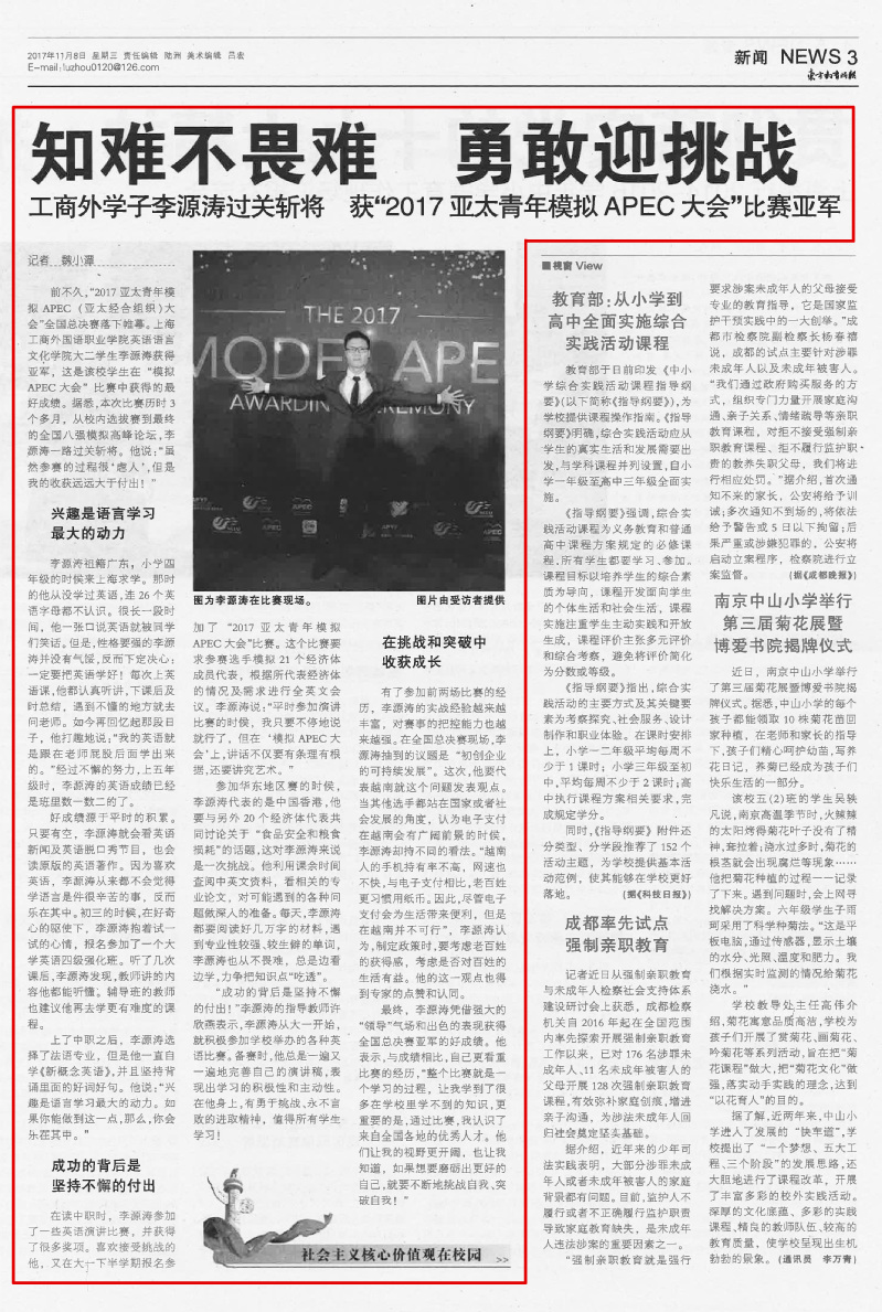 《东方教育时报》2017年11月8日