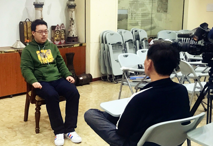 图:活动深受上海粤剧界广泛关注,上海电视台《上海故事》栏目组欲深入了解,特于3月28日前来我校采访管鑫杰和张雯静同学。