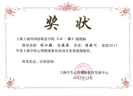 我校心理健康咨询中心积极响应,依托学管工作队伍,精心组织学生参加比赛。学生在教师专业指导下,根据自身优势,利用课外时间广泛搜集材料,并在内容、形式等方面有所创新。最终,经由上海学生心理健康教育发展中心组织专家评审,我校欧洲语言文化学院德语系学生傅晓川在陈江媛、过晓丹老师指导下完成的《心·路》荣获2017年度上海学校心理健康教育活动月优秀微视频奖。《心·路》讲述一位患有抑郁症的同学被初步临床确诊后,周围人、事、物对他的影响。希望通过微视频的展现,引起人们对于抑郁症以及其他心理疾病的重视,并给予理解、援助。