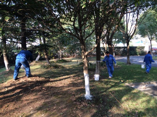 修剪等防治病虫害。从而使学院一年四季花红树绿草青水洁。