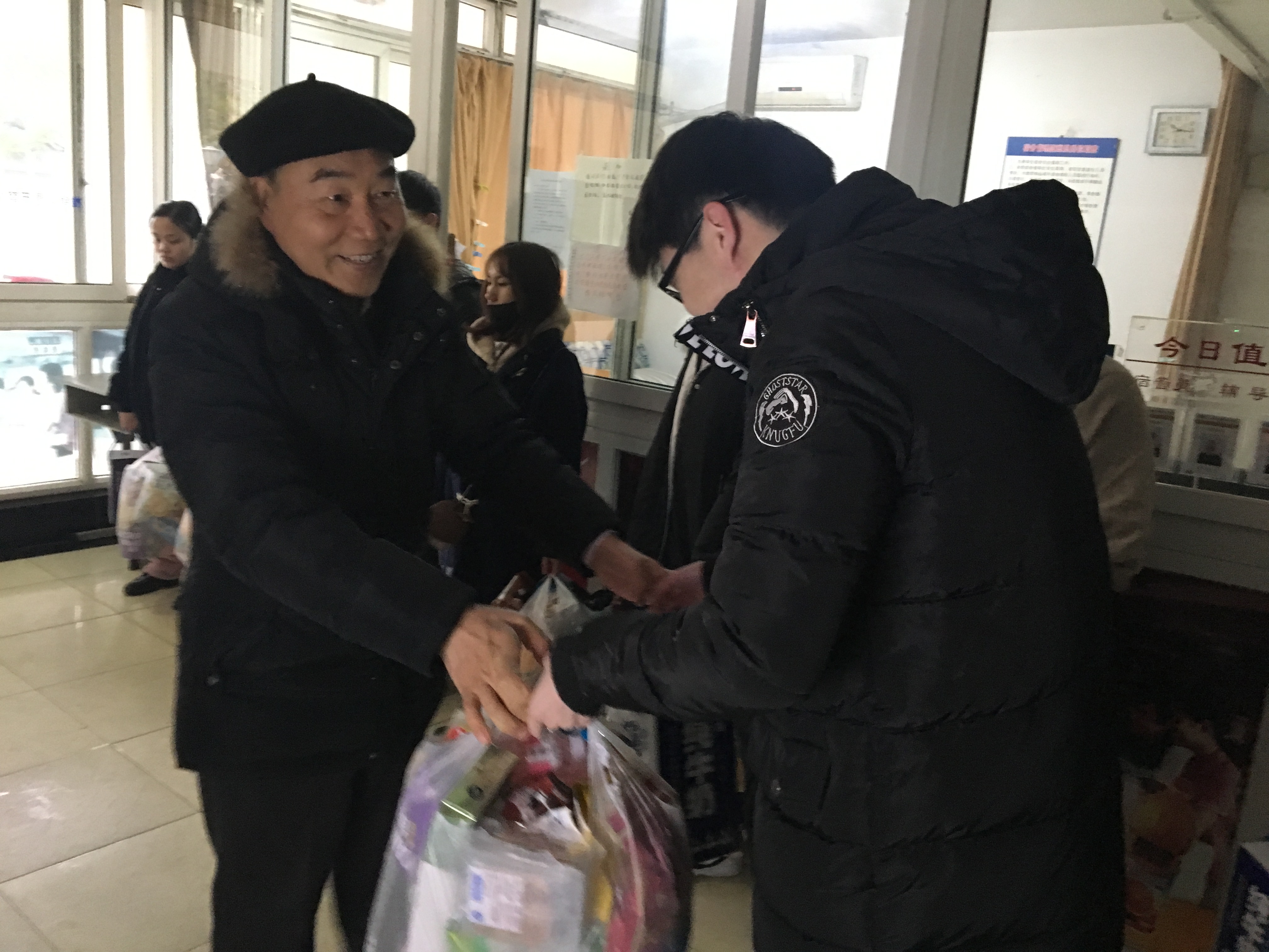 在学生公寓,校领导一行看望了留校学生,关心了解他们春节期间的学习生活安排,向学生拜年并发放新年“大礼包”,祝愿同学们新春快乐、学习进步、身体健康,在学校度过一个欢乐而有意义的春节。