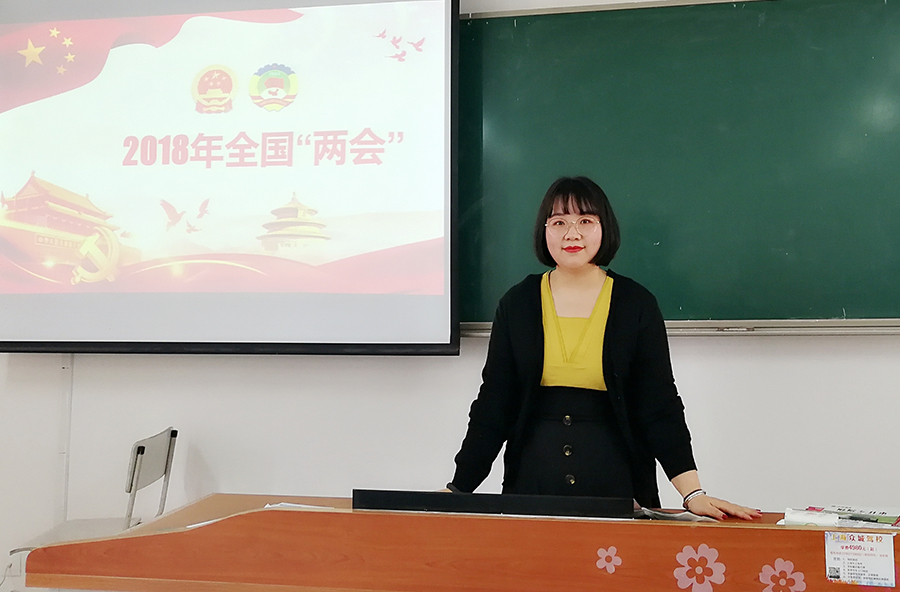 欧洲语言文化学院辅导员、形势与政策课兼职教师胡梦哲精心准备,从两会概况、政府工作报告亮点解读、我与“两会”三个方面进行备课。首先,对2018“两会”的主要工作进行了梳理,重点对宪法修正案与监察法的发布、国务院机构改革以及选举产生的新一届国家领导人进行了介绍。其次,通过43个“两会”热词解读政府工作报告。胡老师在报告解读中,重点聚焦贴近学生学习生活与民生的热词,尤其是对网络提速降费、环境保护、产教融合、高职教育、人工智能、加快技术创新成果转化等进行详细讲解,让同学们更具象地去感受获得感、幸福感与安全感。最后,在“我与‘两会’”部分,胡老师以问题形式启发学生思考,让同学们对未来美好生活进行畅想。