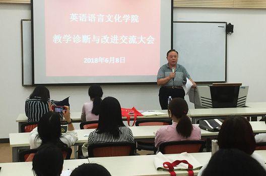6月8日下午,英语语言文化学院教学诊断与改进交流大会在四号楼2号概念教室举行。副校长林财兴、教务处副处长张磊、学院院长陆效用、副院长陈诚和李爱群出席了会议。会议由副院长李爱群主持。