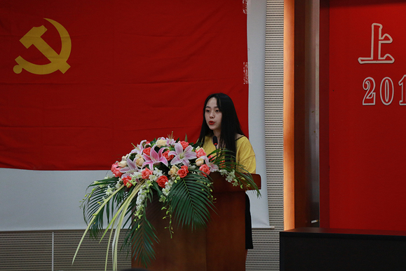 英语语言文化学院英语1516班江东亚同学作为毕业生党员代表发言,表达了对党组织、母校、老师培养自己的感谢之情,表示无论是即将前往上海第二工业大学继续深造,还是将来走上工作岗位,都会时刻铭记自己是一名共产党员,以共产党员的标准严格要求自己,勤奋学习,敢于担当,勇于创新,无私奉献,践行党的宗旨,发挥先锋模范作用,为党旗增辉,为母校添彩!