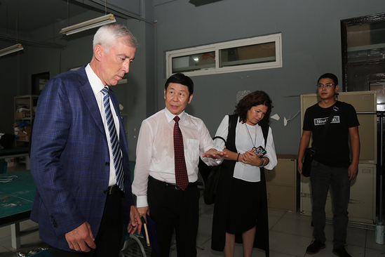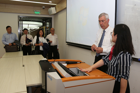 应我校邀请,加拿大圣力嘉学院校长David Agnew,助理副校长 Renata Dinnocenzo,国际部主任Nick Wang 等一行四人代表团于9月15日上午来校访问。David Agnew 校长一行抵校后,在校长助理、外事处处长戴国庆陪同下,先后参观了国际会议中心、商学院实训室、创意设计学院工坊以及外语情境实训室,宾客们对我校完善的教学设施和美丽的校园环境大为赞赏。
