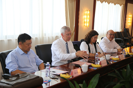 常务副校长毛忠明在八号楼十楼会议室亲切会见了远道而来的客人,宾主双方对共同感兴趣的话题进行了热烈讨论,在愉快、友好气氛中签署了两校合作框架协议。
