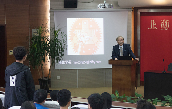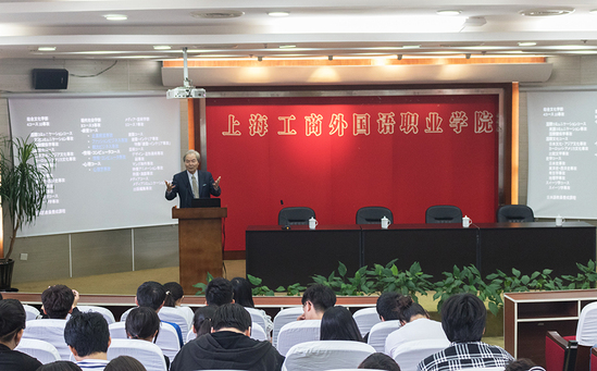 会后,鸟越皓之校长参观了日语系学生课堂,随后在8号楼2楼报告厅为日语系16级学生开展了讲座。通过结合自身经历讲解日本传统文化,并介绍了大手前大学的地理位置、历史特色、开设学部等情况。