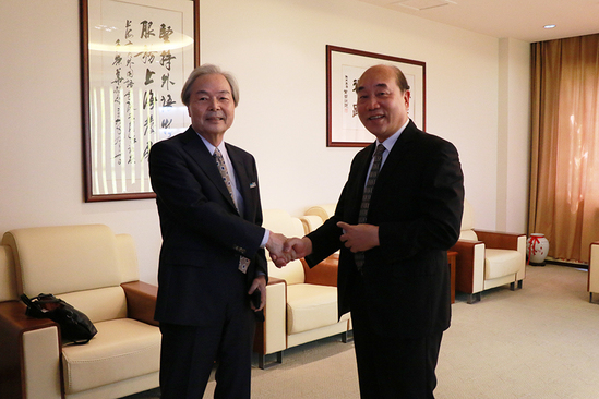 我校校长助理、外事处处长戴国庆和日语系主任张明明陪同鳥越皓之校长先后参观了国际会议中心、创意设计学院、欧式长廊、实训楼等场所。随后,常务副校长毛忠明在八号楼二楼贵宾室亲切会见了鸟越皓之校长,宾主双方就两校合作办学项目进行了深入探讨,并达成了初步合作意向。校长助理、外事处处长戴国庆,日语系主任张明明一起参加了会见。我校2012届日语系毕业生、目前正在大手前大学攻读博士学位的潘小宁陪同鸟越皓之校长一起前来母校访问。