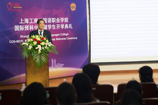 开学典礼由校长助理、国际教育学院院长戴国庆主持。常务副校长毛忠明教授、英语语言文化学院院长陆效用教授以及教务处、学生处、校办、西语系、外事处等负责同志出席了开学典礼。留学中国预科教育联盟(CCN)会长于书诚教授、常务副会长周涌、副秘书长杨静思及CCN相关部门负责人和汉语教师也参加了开学典礼。
