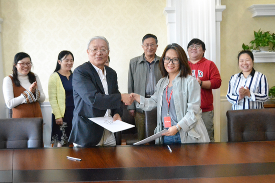 10月11日,朗阁教育集团人事总监屈莉萌和项目负责人戚寅超等人一行前来我校,与欧洲语言文化学院正式签署院企合作项目协议。欧语学院院长虞龙发教授,副院长王保士教授、杨萍副教授,法语系教学副主任徐晓葭老师,德语系教学主任助理范蕾蕾老师及朗阁教育集团相关人员出席了签约仪式。