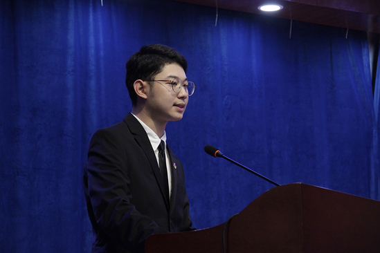 随后进行表彰,党办主任、宣传部长赵泽民为优秀学员代表颁发了荣誉证书。党委副书记、副校长段仁启为张磉老师颁发了个人优秀组织奖。新媒体与文法学院汉语1701班陆毅浩同学、欧洲语言文化学院法语1704班王佳璐同学分别代表结业学员和新学员发言,介绍了自己党校学习的收获体会和打算。