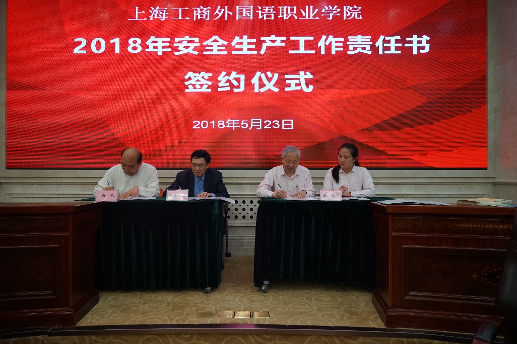 2018年5月23日下午,我校举行了2018年安全生产工作责任书签约仪式。常务副校长毛忠明、党委书记朱南勤以及各二级学院、处室、馆党政负责人出席了签约仪式,会议由后勤保卫处处长张永生主持。