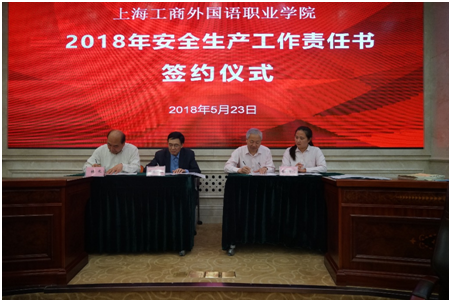 2018年5月23日下午,我校举行了2018年安全生产工作责任书签约仪式。常务副校长毛忠明、党委书记朱南勤以及各二级学院、处室、馆党政负责人出席了签约仪式,会议由后勤保卫处处长张永生主持。
