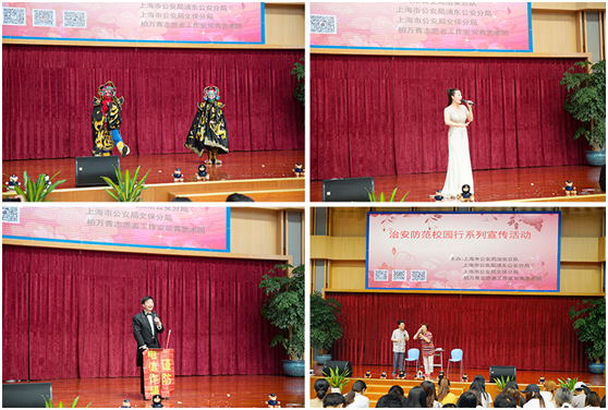 柏万青志愿者工作室常青艺术团带来了形式多样的防范宣传节目,精彩的节目表演,巧妙生动地介绍展示了防范电信网络诈骗的实用知识和技巧,给全体学生上了一堂精彩的安全教育课。这种宣传方式效果独特,更容易让学生入心、入脑。