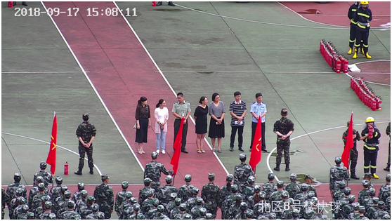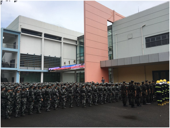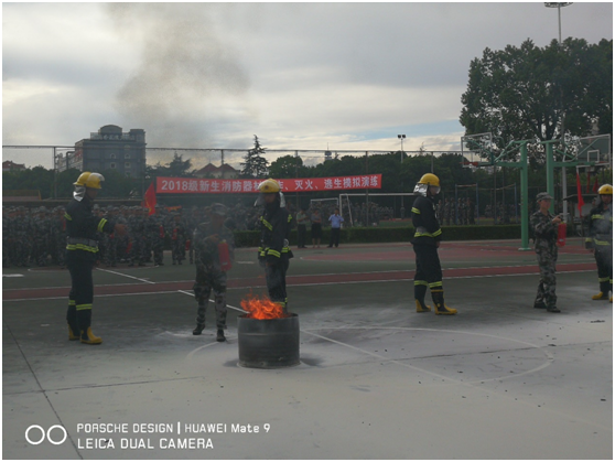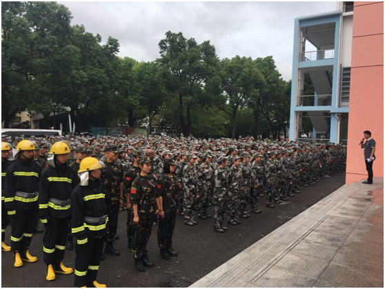 9月17日下午,上海工商外国语职业学院结合新生军训期间举行“我的安全我作主学校安全共分担”为主题的2018级新生消防逃生及灭火器材演练,以进一步增强新生消防安全意识,切实提升新生防灾能力。临港高校派出所吴警官、后保处处长张永生、学生处处长陈瑜、各院系领导、辅导员及学校微型消防站大学生平安志愿者共三千余人参加了演练活动。