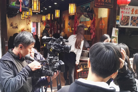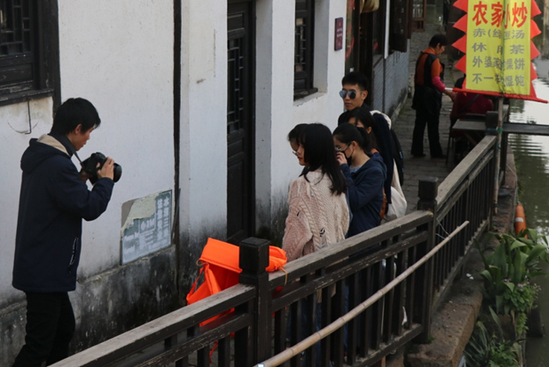 “十三牌楼九环龙,江南新场赛苏州”,学生拟定了不同的采风主题,透过镜头呈现对专业的热爱,通过古镇纪录片、美食诱惑篇、人物采访篇、风景写真篇等,多角度描绘了古镇新场的韵味和特色。小组成员相互间的大力协作和默契配合,也增加了采风活动的幸福感和成就感。
