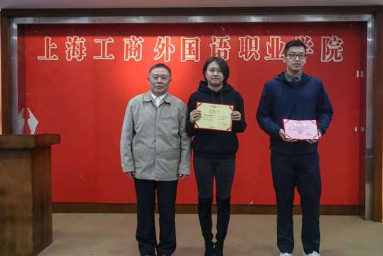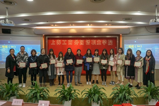 第一个奖项为“第九届(2018年)全国高职高专英语写作大赛校内选拔赛”。一等奖获得者是国商1603的朱佳琦和西语1703的褚津晶荣,两位同学还分获上海市决赛一等奖和二等奖。