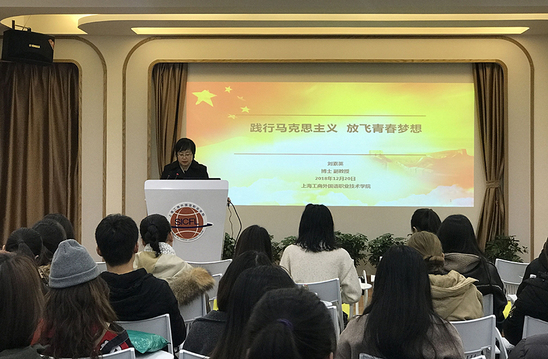 12月20日下午,我校中国特色社会主义理论研究会(学生理论社团)邀请上海市高校优秀思想政治理论课教师、上海思博职业技术学院基础部主任刘素英博士,在我校大学生活动中心为同学们做了《践行马克思主义 放飞青春梦想》主题讲座。