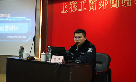 为进一步提高大学生安全防范意识,有效遏制学校诈骗案件发生,1月10日下午,在8号楼二楼报告厅举办了“尚警讲坛”防范新型电信诈骗讲座。浦东新区惠南派出所鲍警官应邀来校,为我校学生讲授了以防范电信诈骗为主要内容的安全知识。学生处处长陈瑜、后勤保卫处相关人员及学生代表150余人到场聆听。