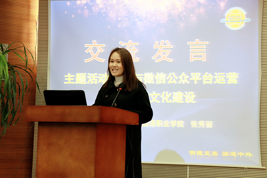 随后进行论坛交流发言环节,四位发言的老师及题目分别是:上海建桥学院商学院党总支副书记王晨岑老师的“整合资源,打造品牌,探索新时代民办高校育人新模式”、上海工商职业技术学院辅导员吕伟老师的“如何提高学生干部执行力”、上海思博职业技术学院辅导员杨刘园老师的“道阻且长,行且降至”、上海工商外国语职业学院英语语言文化学院辅导员张秀丽老师的“主题活动开展与微信公众号平台运营——-助力班级文化建设”。