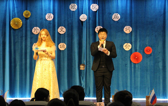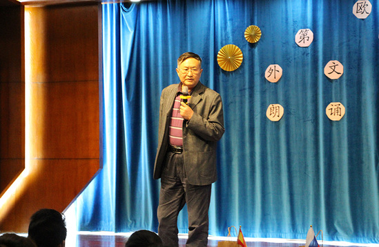 4月9日晚6点,我校欧洲语言文化学院“存恩义、奉于心、续华年”第三届外文诗词朗诵大会在4号楼报告厅成功举办。出席本次活动的有欧语学院副院长王保士教授、副院长周燕、分团委书记樊瀛、辅导员、任课教师及各院系主席团代表。王保士教授以俄语致词。