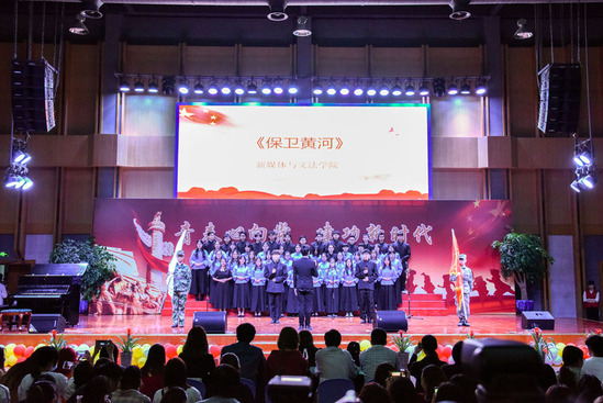 商学院以一曲深情的《国家》,拉开了此次歌会的序幕;英语语言文化学院演唱的《十送红军+映山红》,让我们看到了红军与人民的鱼水情深;新媒体与文法学院以一首气势磅礴的《保卫黄河》,唱出了中华民族屹立在世界民族之林的不屈脊梁;无论身处何方,我们都是中华儿女,创意设计学院演唱的《我的中国心》,再一次激发了我们心中对祖国母亲的无限爱恋;智能制造与信息工程学院的歌曲《我爱你,中国》抒发了作为中华儿女的自豪感;欧洲语言文化学院的《长城谣》,娓娓道来、深情款款,提醒我们不要忘记那段苦难的民族历史;东方语言文化学院以一曲《我和我的祖国》真切地表达了对祖国母亲的爱,将此次歌会推向了高潮。