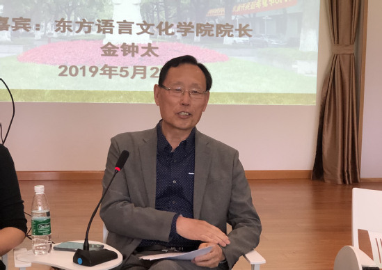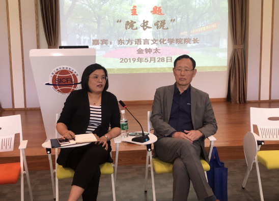 5月28日中午,由学生处主办的第十期辅导员“午间工作坊”之“院长说”(第五期)活动在大学生活动中心辅导员工作坊举行,此次活动邀请东方语言文化学院院长金钟太教授作为主讲嘉宾。校党委副书记、副校长段仁启,学生处处长陈瑜,各二级学院学生工作负责人及全体辅导员出席了此次活动,活动由陈瑜主持。