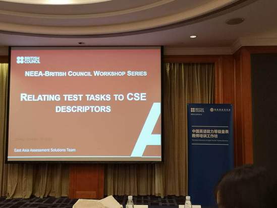 来自教育部考试中心、上海财经大学、安徽大学的测试学专家分别就教育系统中英语标准的地位、量表指标的解读以及量表各级别输入输出技能进行了培训指导。其中,在量表描述语熟悉活动中,英国文化协会East Asia Assessment Solutions Team英语测评专家组总监Sheryl Cooke女士仔细剖析了英文描述语在各级别中的使用和判断方法,使与会教师受益匪浅。