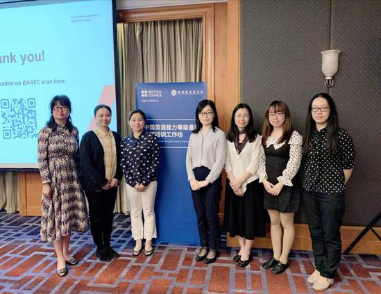 5月25日,英语语言文化学院七名中青年骨干教师参加了教育部考试中心和英国文化协会主办的中国英语能力等级量表教师培训工作坊。本次培训在上海、广州两地同时举办,以中国英语能力等级量表(China’s Standards of English Language Ability)及其应用研究为主题,为2019年教育部考试中心在全国范围举办教师培训工作坊中的第一批。