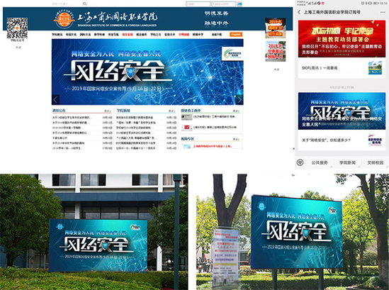 学校通过校园网、官方微信、校内LED屏等多种载体开展网络安全广泛宣传。各二级学院组织了形式多样的班会、团课活动普及网络安全知识。