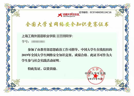 宣传周内,我校师生竞相参加“全国大学生网络安全知识竞赛”,通过答题闯关,普及网络安全知识,共计7883人参赛,7389人合格并荣获证书。