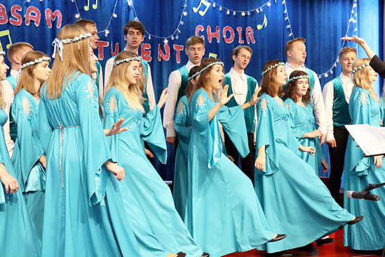 11月8日,白俄罗斯国立音乐学院合唱团来我校访问,并在四百人报告厅举行了精彩的合唱演出。莅临本次活动的嘉宾有明斯克文化局局长鲁济科娃·维塔莉娜·弗拉基米罗夫娜(Рудикова Виталина Владимировна)、欧洲语言文化学院院长虞龙发教授、国际教育学院院长兼外事处处长严庭国教授戈梅利学院院长兼欧洲语言文化学院副院长王保士教授以及俄语系全体教师。报告厅内灯光璀璨人声鼎沸座无虚席。此次活动以多元多角度交流两国文化为主旨,以艺术形式加强两国情谊为核心使得在场每一位同学及老师受益匪浅,也让本次活动意义深刻,同时也丰富了校园文化生活。