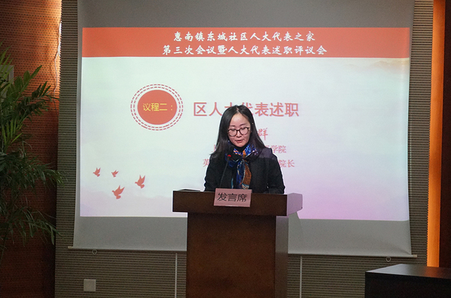 11月26日上午,惠南镇东城社区人大代表之家第三次会议暨人大代表述职评议会,在我校八号楼二楼报告厅举行。惠南镇人大副主席唐世君、惠南镇人大联络室、东城社区人大代表之家工作小组成员、东城社区区人大代表、镇人大代表及选民代表近80人出席此次会议。
