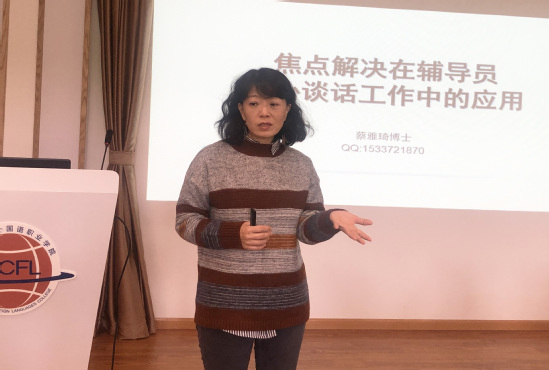 谈心谈话是高校辅导员的日常工作之一,是辅导员了解学生、关心学生、帮助学生的有效途径,辅导员的谈话艺术直接影响着对学生心理疏导和关怀教育的效果。12月6日下午,学校邀请蔡雅琦博士来我校开展“焦点解决在辅导员谈心谈话工作中的应用”专题讲座。学生处处长陈瑜,各二级学院学生工作负责人及全体专兼职辅导员参加此次活动,活动由陈瑜主持。