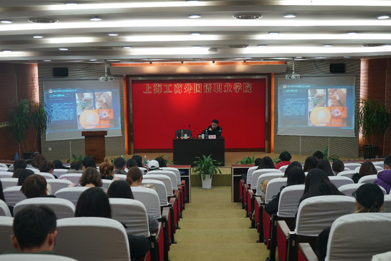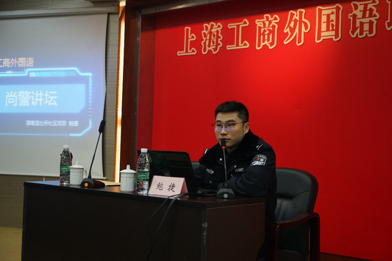 为进一步提高大学生安全防范意识,有效遏制我校诈骗案件发生,2019年1月10日下午,在8号楼二楼报告厅举办“尚警讲坛”防范新型电信诈骗讲座,惠南派出所的鲍警官讲授以防范电信诈骗为主要内容的安全知识。学生处处长陈瑜、后保处相关人员及学生代表150余人聆听了讲座。